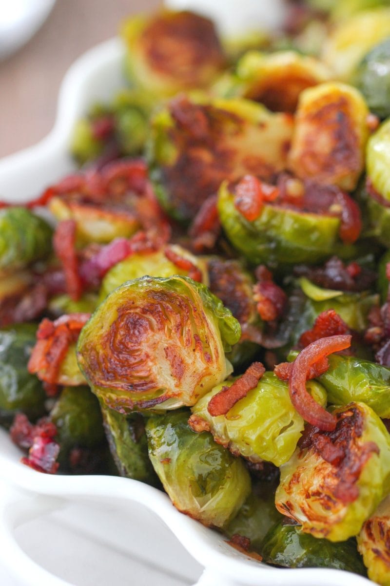These roasted brussels sprouts are perfectly tender and caramelized, with crunchy bacon, red onion and sweet balsamic vinegar, they're completely irresistible.
