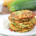 These Zucchini Potato Fritters are made from grated zucchini and potatoes, mixed into a batter, then pan fried until golden and crisp on the outside and tender on the inside. They are delicious served with some sour cream.