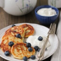 What I absolutely love about Sirniki is how versatile they are. They make the most wonderful breakfast to kickstart your day or can easily be served as a delightful dessert. You can enjoy them with a variety of toppings, depending on what you’re in the mood for. Fresh fruit brings a light, refreshing contrast to the richness of the pancakes, while a dollop of jam adds a sweet and fruity layer. But my personal favorite is to pair them with sour cream. You can go the classic route with plain sour cream for a tangy, creamy finish or sweeten it up with a touch of sugar, maple syrup, or honey for a healthier twist. A splash of vanilla in the sweetened sour cream adds a fragrant touch that takes this treat to the next level.