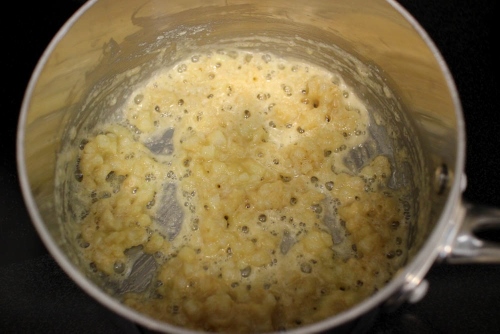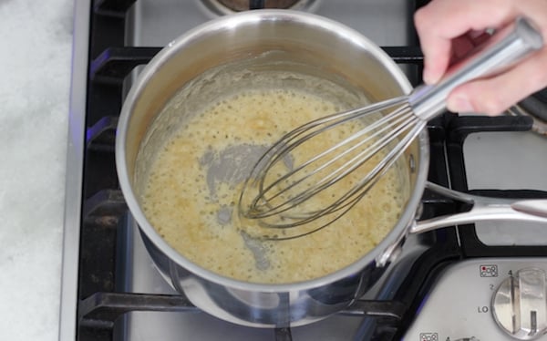 - Add the flour and mix until it's completely incorporated into the butter, and cook for about a minute.