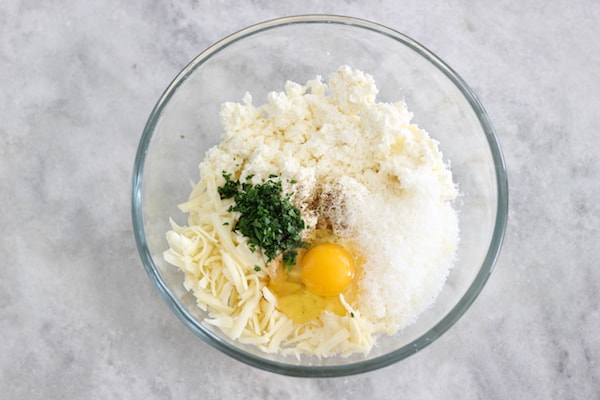 - While the sauce is cooking, stir together all the ingredients for the cheese filling.