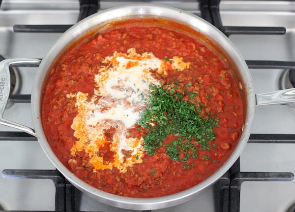 I add a touch of cream to almost all my tomato sauces. It gives the sauce a nice velvetiness. The fresh herbs are a must. I absolutely love the way they elevate the sauce and give it so much freshness and flavor.
