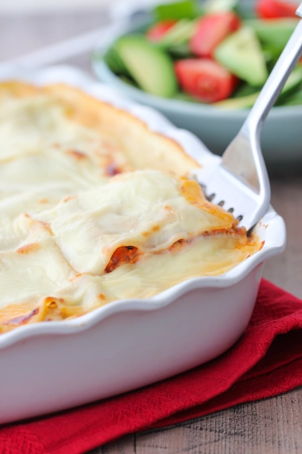 I make my lasagna almost identical to yours; however, I have never made a cheese sauce. I will definitely give it a try next time I make lasagna! 🙂