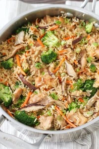 It's so hard to balance housework and cooking with a baby, I've learned to make so many shortcuts since having my daughter 2 years ago. I used to always be worried that dinner would not be made and the house would not be clean, but looking back I am glad that I spent time with my daughter when she was a baby. She grew up way too fast, now she loves helping me out in the kitchen so I get to spend time with her, it a win win 😉 This one dish Asian chicken rice look like something I will need to make soon, I love easy meals!