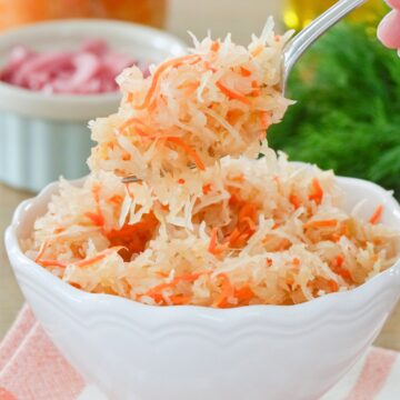 I always wanted to try and make my own sauerkraut but felt intimidated by the process until I saw you recipe and it seemed so easy! I can not thank you enough Olga 🙏🏻 It comes out perfect every time. Our family loves it, especially my husband, he loves taking it to work (he doesn’t like to eat anything heavy at work). And I’ve been adding it to my meals, even breakfast, as a side to my eggs and avocado. It’s delicious 😋 Thank you so much ❤️