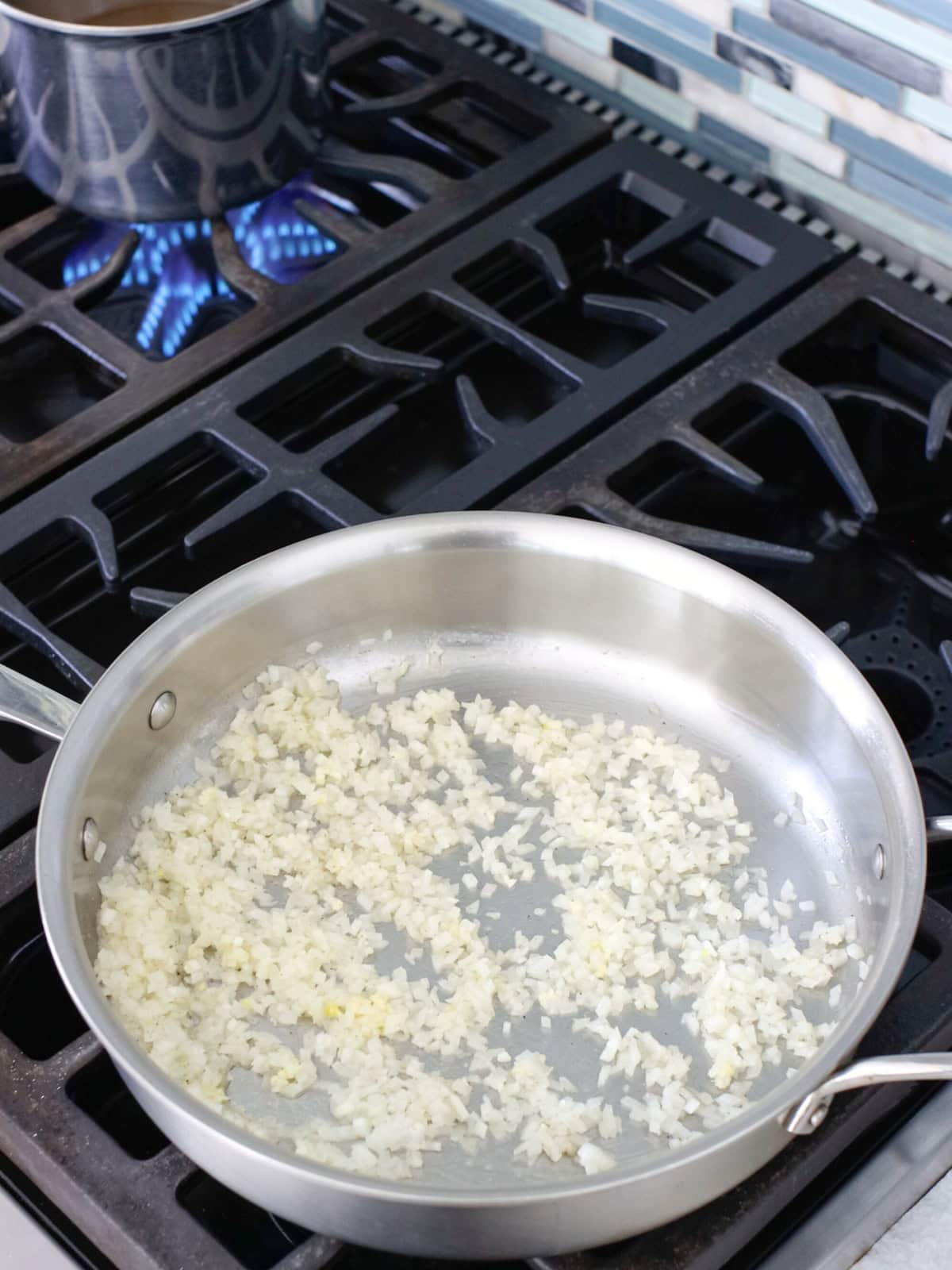 - Step 1: Melt butter in a deep skillet over medium heat. Add onions and garlic, season with salt and pepper, and cook for about 5 minutes. Meanwhile, bring the chicken broth to a boil in a small saucepan.