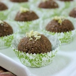 - Form the mixture into the shape of a potato and add a few "sprouts" by using walnuts. I prefer making these into simple round balls and garnishing with some toasted ground nuts. If you're shaping them into the traditional shape, you will need to use about 3 Tablespoons of the mixture for each one, or 1 heaping Tablespoon for the smaller round balls.
