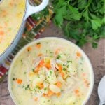 Strain the broth through a fine-mesh sieve lined with a cheesecloth or a paper towel. When cool enough to handle, take the meat off the bone. Set aside. You will have about 8 cups of broth and 1- 1 1/2 cups of meat. If you have chicken broth and cooked chicken on hand, you can save some time by using them instead of starting from scratch.