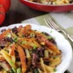 Pour in the mushroom broth that you reserved earlier. Cover the skillet and cook for about 10-15 minutes, on medium low heat, until the mushrooms are softened and all the mushrooms broth is absorbed. Set the caramelized onion and mushrooms aside.
